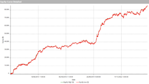 Osservando la Figura 2, che mostra l’andamento dell’equity line della strategia dal 2010 a oggi, si nota un risultato complessivamente positivo e crescente nel tempo. L’equity presenta alcune fasi laterali e periodi di consolidamento, ma nel complesso evidenzia una progressione stabile, con un incremento più marcato nei momenti in cui il titolo ha mostrato tendenze direzionali ben definite. Il net profit complessivo è di circa 85.000 dollari, un valore che, considerando la semplicità della logica utilizzata, rappresenta un risultato incoraggiante.