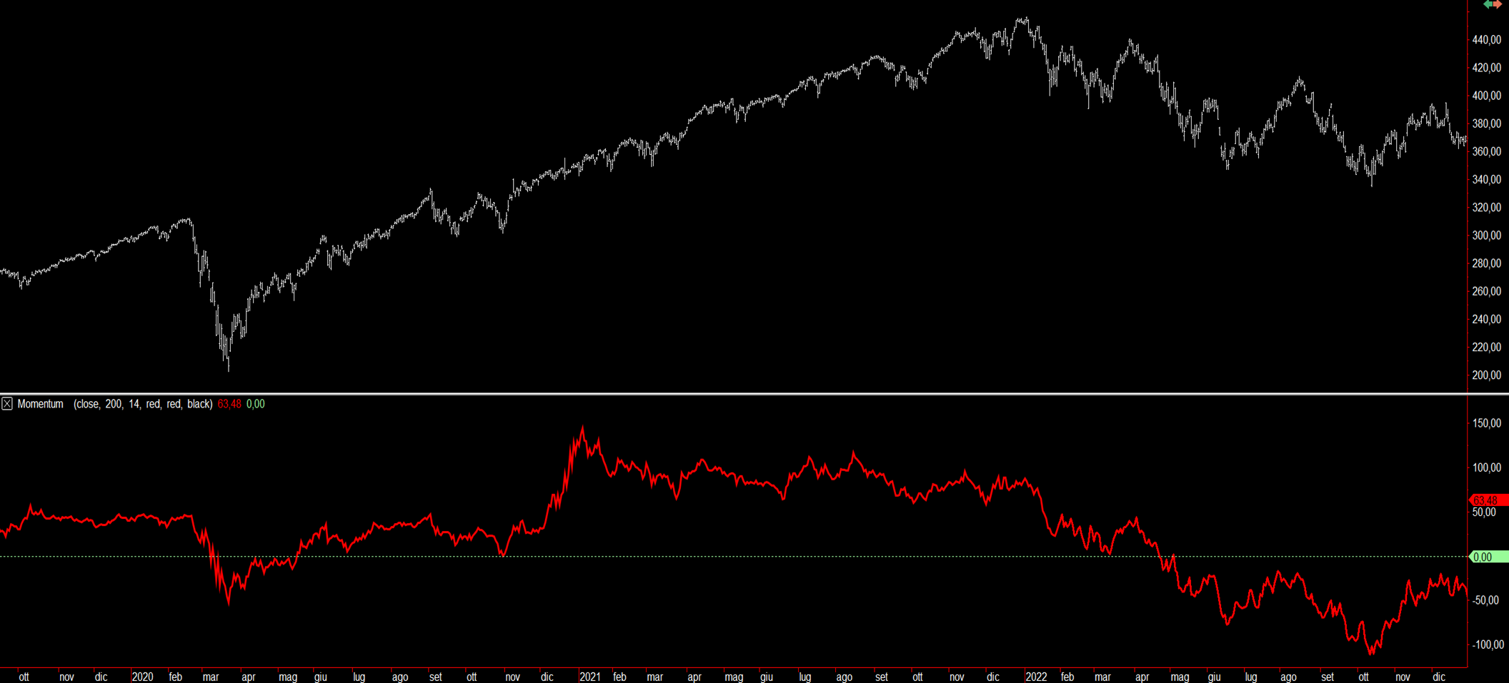 Naturalmente, questa non è l’unica modalità con cui l’indicatore può essere impiegato. Il Momentum può infatti essere utilizzato come trigger operativo, come filtro su orizzonti più brevi, oppure ancora come criterio per il ranking tra diversi asset, come accennato in precedenza.