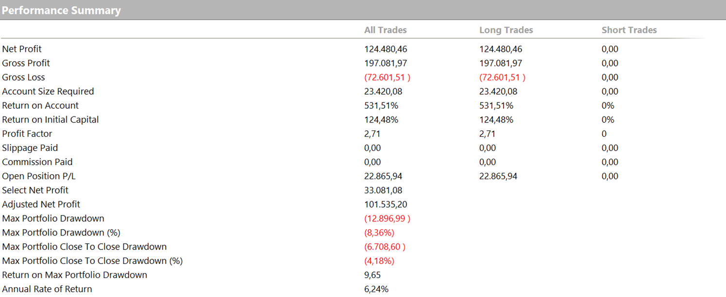 Passando invece alla tabella riassuntiva delle performance (Figura 5), emerge un rendimento annuo del 6,24%, che potrebbe sembrare modesto.