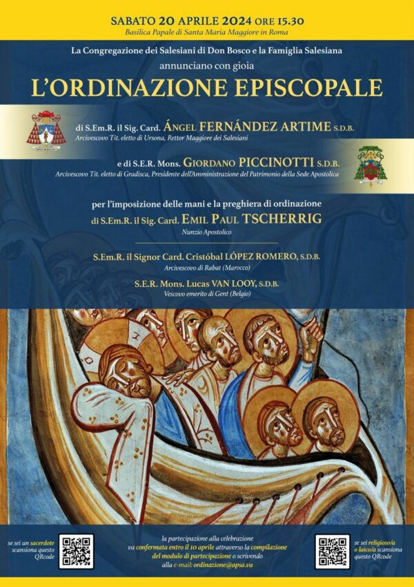 erirsi a tutti i cardinali (15 aprile 1962), e fu programmata per il 20 aprile 2024. La sua ordinazione episcopale fu fatta per imposizione delle mani e la preghiera di ordinazione di S. Em. R. il Sig. Card. Emil Paul TSCHERRIG, nunzio apostolico emerito in Italia e nella Repubblica di San Marino al quale si aggiunsero S. Em. R. il Sig. Card. Cristóbal LÓPEZ ROMERO, sdb, Arcivescovo di Rabat (Marocco) e S.E.R. Mons. Lucas VAN LOOY, sdb, vescovo emerito di Gent (Belgio). La celebrazione si svolse nella Basilica Papale di Santa Maria Maggiore in Roma alle ore 15.30.