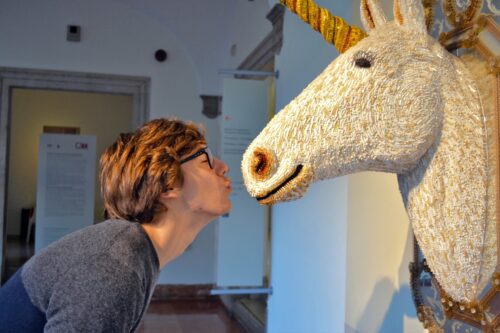 Diverse le iniziative proposte dall’Accademia Statale di Belle Arti di Ravenna – unica delle istituzioni dell’Alta Formazione Artistica, Musicale e Coreutica italiana a offrire percorsi formativi sul mosaico – tra cui mostre, installazioni, nuove produzioni e interventi di arte pubblica, frutto di pratiche collaborative e di un’ampia rete di relazioni con le istituzioni culturali della città. Immaginose rappresentazioni. Contaminazioni tra Accademia di Belle Arti e Museo Nazionale è una mostra collettiva, a cura di Sabina Ghinassi ed Eleonora Savorelli, che vede le opere di studenti e studentesse in dialogo con gli spazi e le presenze molteplici del Museo Nazionale di Ravenna. Il linguaggio musivo dell’ultima generazione di mosaiciste/i, ravennati di nascita o formazione, si apre a una libera e “immaginosa” relazione con le tracce del passato, intrecciandosi alle opere della collezione permanente del museo, per ricostruire un immaginario alternativo, magico e perturbante. Il Museo Nazionale, parallelamente alle iniziative in collaborazione con l’Accademia di Belle Arti, ospita un recente dittico dell’eccentrico artista pugliese Orodé Deoro, come estensione della mostra personale Mosaici e Carte dipinte, allestita negli spazi del Museo Sigismondo Castromediano e della Biblioteca Bernardini di Lecce, a cura di Daniele Torcellini.