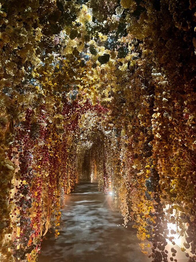 Accanto a queste opere storiche, troviamo le sculture contemporanee di Ai Weiwei e Kapwani Kiwanga, che utilizzano i fiori come metafora di resistenza e rigenerazione, ponendo l’accento sulle sfide sociali e ambientali del nostro tempo. Studio Drift affascina con le sue installazioni tecnologiche ispirate ai processi naturali, mentre Kehinde Wiley offre un’interpretazione audace e vibrante del tema floreale. Miguel Chevalier esplora la questione della naturalezza e dell’artificialità dei fiori con la sua installazione immersiva, e Rebecca Louise Law crea un suggestivo corridoio in cui il pubblico sarà letteralmente sommerso dai fiori, offrendo un’esperienza sensoriale irripetibile almeno quanto il percorso olfattivo, ospitato lungo il percorso espositivo e la passeggiata botanica, ospitata nel loggiato superiore. Anche l’esterno del Chiostro sarà protagonista della mostra, completamente trasformato in un vero e proprio paradiso terrestre da un’installazione firmata Austin Young (Fallen Fruit).
