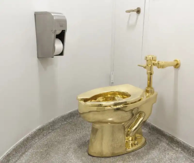 erick Doe e James Sheen. Il water fu al centro di una diatriba con la Casa Bianca di Trump. Nel 2018 il presidente, allora al primo mandato, aveva chiesto al Guggenheim un’opera di van Gogh in prestito per l’appartamento privato dell’Executive Residence, i curatori risposero picche offrendo in cambio il wc di Cattelan. “America” -questo il nome del water- era stata concepita prima che Trump diventasse un candidato serio alla presidenza, ma lo stesso Cattelan, inizialmente ispirato dal tema delle diseguaglianze economiche negli Usa, aveva notato l’affinita’ tra il tycoon e il luccichio dell’oro, a partire dalla Trump Tower fino agli accessori dorati nei bagni del suo jet privato; l’artista padovano aveva anche sottolineato con il New Yorker lo spirito democratico della sua installazione: “Se mangi un pasto da duecento dollari o un hot dog da due, il risultato quando vai in bagno è lo stesso”.