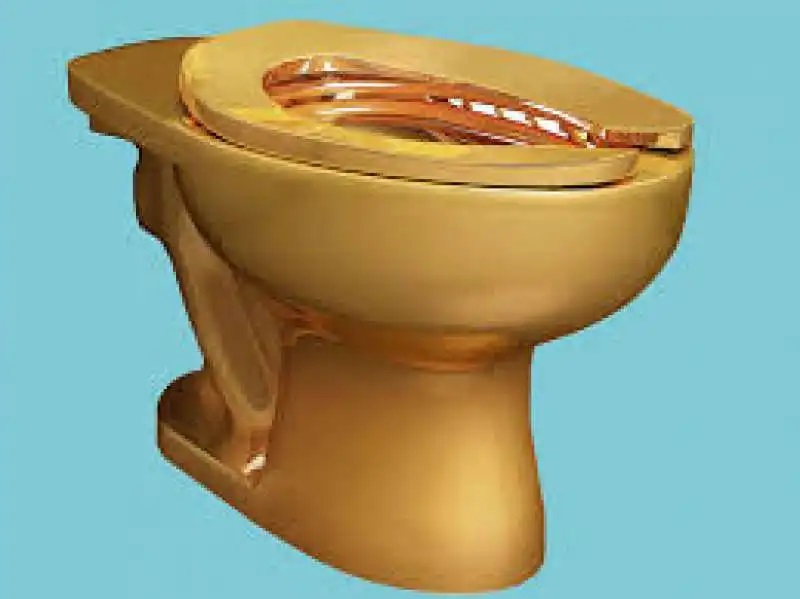 Nella storia dell’arte contemporanea il capitolo primo l’ha scritto Piero Manzoni con la sua “Merda d’Artista”, scatolette vendute a peso d’ oro. C’era stato un precedente per la verità con l’orinatoio di Duchamp. Ora è la volta del secondo capitolo e riguarda il cesso d’oro, anzi il water d’oro di Maurizio Cattelan, celebre opera pagata a peso d’oro. Dieci milioni di dollari è il prezzo di partenza con cui verrà messo all’asta il water a 18 carati -nome “America”- di Maurizio Cattelan, oggetto iconico già al centro delle polemiche nel 2016 quando era stato installato al Guggenheim e perfettamente