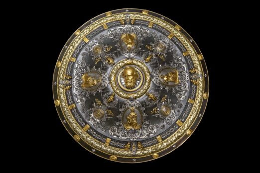 Esposto presso la Sala Altoviti fino al 12 aprile 2026, lo Scudo di Garibaldi, in bronzo cesellato, nonché parzialmente dorato e argentato, fu realizzato dal siciliano Antonio Ximenes su commissione del popolo siciliano per celebrare Giuseppe Garibaldi e l’eroica impresa dei Mille. L’opera si ispira al clipeo classico (il grande scudo in metallo, rotondo e bombato, utilizzato dai soldati greci e romani) e vede al centro la testa dorata e a tutto tondo dell’Eroe dei Due Mondi, ai lati, i nomi delle città siciliane conquistate e, sul bordo, incisi, i nomi dei garibaldini che parteciparono alla suddetta spedizione.