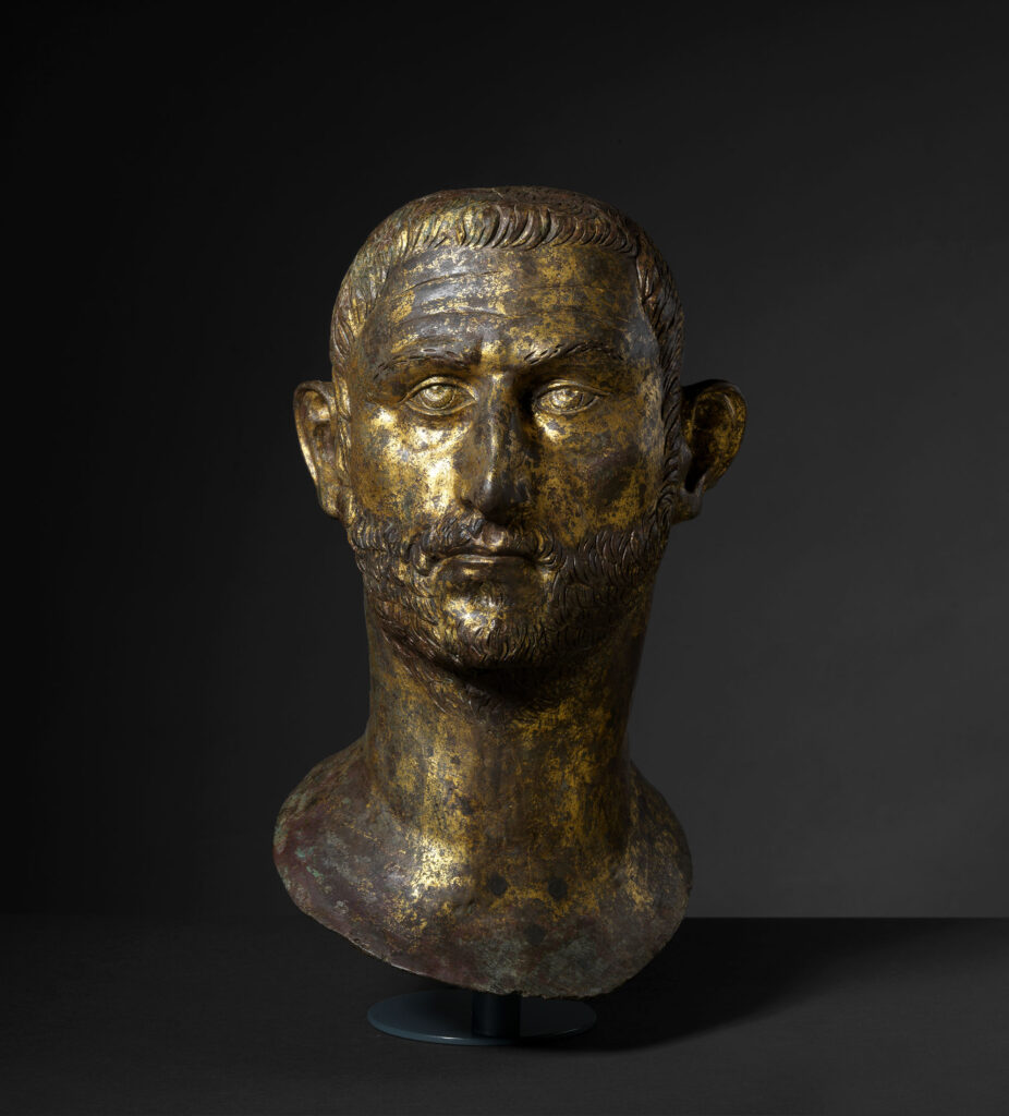 Le tre teste provenienti da Brescia aiutano a definire l’estetica del potere. L’immagine dell’imperatore, spesso visto nelle vesti di pensatore e filosofo, maturo ma possente, era in grado di trasmettere sicurezza e stabilità, grazie anche a un’acconciatura e a un taglio della barba tali da renderlo immediatamente riconoscibile e differenziarlo da tutti i suoi predecessori. Più tardi, alla metà del III secolo d.C., l’iconografia imperiale attinse ai simboli che furono già di Augusto e dei suoi successori, per comunicate forza e fermezza, con l’intento di supportare la conservazione dell’autorità. I cosiddetti ‘imperatori illirici’, come Probo e Claudio il Gotico, ad esempio, dimostravano la propria sicurezza esibendo uno sguardo altero e distaccato, ma sottolineavano, con la fermezza dei tratti e dell’espressione, il proprio impegno civile, rispondendo a un modello di bellezza virile priva di orpelli, ma associata alla resa di una acconciatura allo stesso tempo semplice e curata.