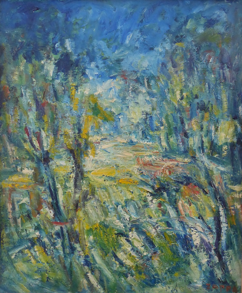 la Grizzana, di Purificato con la Ciociaria, di Ciardo con il Salento, di Addamiano con le Murge, di Morlotti e di Zappa con la Brianza, ecc. Sono i paesaggi che durano, fatti di forme e di macchie di colori, paesaggi ontologici, non fenomenici. Paesaggi che agganciano il numero pitagorico, il logos eracliteo che si astrae dal divenire, a questo pensiero, a questa concezione della realtà, che si rifà Cèzanne -e a seguire Morlotti e Zappa-, impressionista soltanto in superficie e al principio della carriera e poi in seguito lontanissimo dai suoi amici del Cafè Guerbois. Non ci sono colori fermi e prospettive rigorose come in Mario Zappa, perchè sotto e nella composizione del pittore brianzolo, nei colori puri e nei suoi segni informi c’è la stessa struttura del mondo, fatto di volumi irriducibili, immutabili, di una essenza eterna. In Zappa vi è una costruzione del paesaggio che è davvero traduzione di una forma mentale, di un modo di pensare il mondo. La natura, il paesaggio come disegno ideale da ricercare sotto le apparenze ingannevoli e mutevoli.