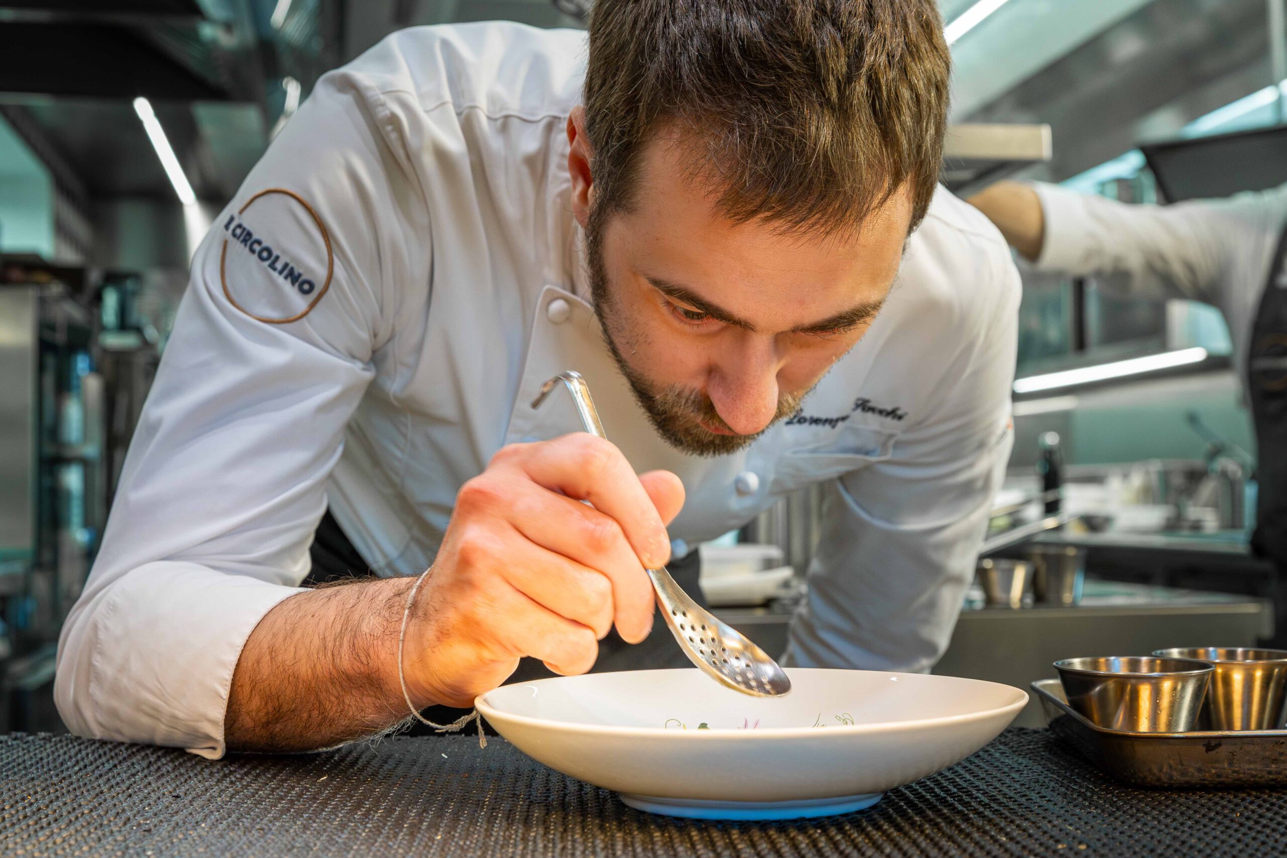 Inoltre, consapevole che la cucina è un lavoro di squadra, da Barcellona mi sono portato con me in Italia la mia compagna Maria Sainz, dopo averglielo chiesto se voleva salire con me sul carro per questa sfida, lei ha lavorato con tutti gli stellati di Spagna, e il sous chef Juan Sanz, il mio braccio destro e sinistro con cui lavoravo all’Oria, in modo da ricreare quel bellissimo ambiente che c’era in cucina a Barcellona. Ora tocca a noi, qui al Circolino a ricreare una cucina che rispetti i nostri ideali, con l’importanza di mantenere la sua identità e i suoi altissimi livelli di eccellenza gastronomica e con i quali raccontiamo da dove veniamo e quali esperienze portiamo. Un luogo in cui contano le persone, le brave persone, perché uno chef bravo è prima di tutto una brava persona, anche questo ho imparato nella mia esperienza a Barcellona. E nella mia cucina ho pochissimo turn over di collaboratori, perché uno chef deve essere un grande formatore, un bravo motivatore. La mia è una brigata di dieci persone, non piccola, devo fare un lavoro anche da psicologo, bisogna saperla gratificare, premiare e farli sentire parte del progetto e della vita del ristorante. E ora posso dire che questa strategia ci sta premiando con i risultati che abbiamo raggiunto, come la prima stella Michelin. Mi piace pensare che posso essere un esempio per i miei giovani collaboratori, con i quali trascorriamo assieme molte ore, dalle nove del mattino fino a mezzanotte. Ed è una grandissima responsabilità». Da monzese con la passione per i motori «Non perde un Gran Premio di Formula Uno>>, chef Lorenzo Sacchi non poteva dire di “no” a Sadler.