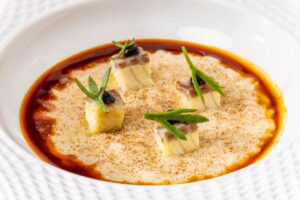 «La mia intenzione era di rimanere un anno in Spagna, per poi cambiare per Parigi. Sentivo di avere accumulato un po’ di ritardo con quello stop e scalpitavo per ripartire: entro come sous chef al ristorante Oria dello chef Xabi Goikoetxea, firmato Martín Berasategui, il mio mentore, all’interno dell’Hotel Monument e, grazie anche a me, nel 2018 arriva la prima Stella Michelin».