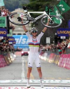 Niente doppietta o , quantomeno, non sarà Tadej Pogacar a farla ma potrebbe provarci Remco Evnepoel se, come ha detto all’arrivo, ” Domenica prossima le gambe saranno ancora queste di oggi…”. Oggi il marziano è stato lui che ha vinto l’oro a cronometro nella giornata d’apertura dei campionati del mondo di ciclismo, a Kigali, in Ruanda. Si conferma campione per la terza volta consecutiva dopo aver chiuso i 40,6 km del percorso col tempo di 49’46”03, precedendo l’australiano Jay Vine, argento, e il connazionale Ilian Van Wilder. Il migliore degli italiani è stato Matteo Sobrero che è arrivato tredicesimo. Non […]