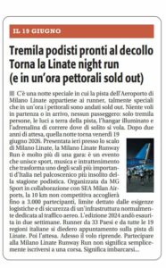 C’è una notte speciale in cui la pista dell’Aeroporto di Milano Linate appartiene ai runner, talmente speciali che in un’ora i pettorali sono andati sold out. Niente voli in partenza o in arrivo, nessun passeggero: solo tremila persone, le luci a terra della pista, l’hangar illuminato e l’adrenalina di correre dove di solito si vola. Dopo due anni di attesa, quella notte torna venerdì 19 giugno 2026 e che non si vedesse l’ora di partecipare meglio di tutto lo spiega il fatto è che in un’ora siano andati sold out tutti e tremila i pettorali. Forza di un’idea, di un format si dice oggi, che unisce al fascino della corsa quello di un luogo magico di suo. La gara comincerà a mezzanotte dopo che sarà atterrato alle 23.30 l’ultimo volo della giornata e si svolgerà tra la pista di atterraggio e quella di rullaggio.