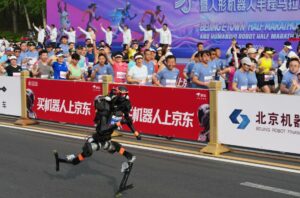 Film profetici sui rapporti uomi robot come Her e serie TV come Humans hanno mostrato che le persone potrebbero ben presto innamorarsi di umanoidi sempre più somiglianti alle persone in carne e ossa. Dalla cucina, alle pulizie di casa, dai lavori di fatica e non solo di fatica alla guerra al sesso la robotica si sta inesorabilmente impadronendo delle nostre vite. Toccava allo sport, anzi in realtà è gia toccato perchè la tecnologia e l’intelligenza artificiale già oggi in molte discipline sono necessarie per i progetti, lo sviluppo, per migliorare performance e sicurezza. Ma se ci si aspetta di vedere i robot alle spalle di un progetto sportivo o al massimo al fianco, forse non si immaginava di vederli protagonisti in modo eclatante. E invece ci siamo. Pochi giorni fa a Pechino sulle strade intorno a E-Town, il polo produttivo high-tech statale nella capitale cinese, si è corsa un mezza maratona al mondo con robot umanoidi . E un robot umanoide che era in gara contro corridori in carne e ossa ha battuto il record mondiale in mezza maratona.