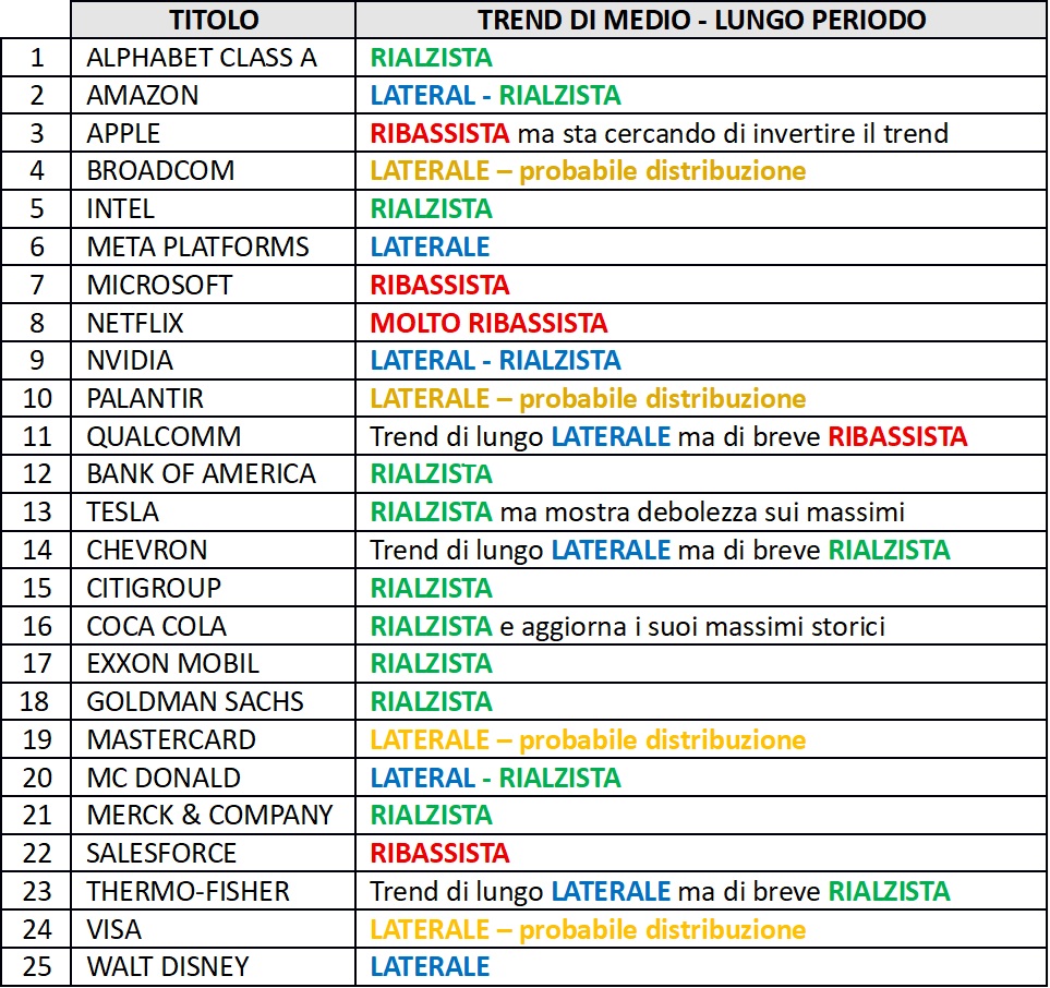 Passiamo alla seguente tabella di alcuni dei titoli più famosi del mercato americano (tutti sarebbe impossibile perché sono migliaia!)