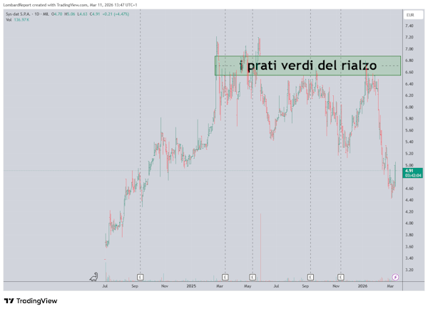 In sintesi, SYS-DAT è come un vino giovane che promette bene, ma che va gustato sapendo che berne troppo potrebbe dare alla testa. Nell’attesa di un 2026 che si preannuncia altrettanto vivace, gli investitori dovrebbero cercare un punto di entrata tecnico su un grafico che per il momento congestiona. Finché i prezzi non portano via i massimi precedenti a cavallo di 6.5 euro.