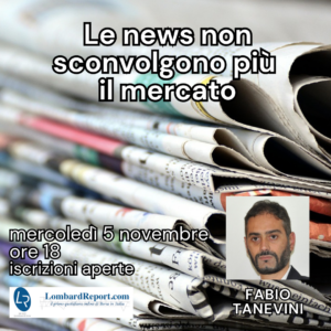 Oggi abbiamo la possibilità di essere costantemente connessi con il resto del mondo. Con un click su un’applicazione possiamo leggere notizie dagli Stati Uniti o dall’Australia. Sui social possiamo trovare aggiornamenti dell’ultima ora. Ma questo fiume di notizie incide con forza sul mercato? Per Fabio Tanevini la risposta è no. Una risposta che argomenterà, grafici alla mano, mercoledì 5 novembre dalle ore 18, facendo anche riferimento ai recenti scambi tra Washington e Pechino sul tema dazi in un webinar targato LombardReport.com. CLICCA QUI PER ISCRIVERTI Si parlerà anche di azioni ed indici. In particolare, Tanevini si concentrerà sui titoli legati alla quantistica, come […]