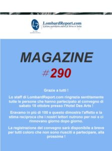 E’ uscito il nuovo numero #291 del magazine di Lombardreport.com! Leggi comodamente su tablet, Smartphone o PC il nuovo numero del magazine dedicato al mondo del trading e della finanza ! Ecco i migliori articoli della settimana: Azioni Monte dei Paschi: Pulitura degli stop e ripartenza ? a cura di Emilio Tomasini DAL CONVEGNO… [VIDEO] Come gli algoritmi e le notizie influiscono sui mercati – Intervento di Pier Nicola Assiso a cura di Paolo Braglia >>Clicca qui per vedere il video >> Strategia Value: trimestrale per Kering A cura di Francesco Norcini Ferrari, la mia storia di trading parte 2. […]