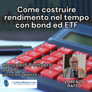 Vuoi capire come costruire rendimento nel tempo con bond ed ETF? Tra ISIN, indicatori di rendimento e dati di mercato non è così complicato disorientarsi. Per cercare di fare un po’ di chiarezza, LombardReport.com apre la nuova stagione di webinar con Lorenzo Raffo. L’appuntamento da segnare in agenda è per mercoledì 8 ottobre, ore 18. CLICCA QUI PER ISCRIVERTI Raffo ci condurrà in un viaggio senza fronzoli nel mondo degli investimenti obbligazionari e degli ETF. Sul piatto Isin, yield ed altri aspetti per costruire rendimento nel tempo con bond ed ETF. Un motivo in più partecipare alla diretta? È prevista […]