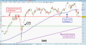 Da notare che l’indice tedesco è abbastanza debole perché è sceso decisamente sotto la media mobile a 200 giorni.