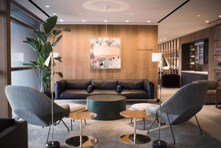 L’ala di First Class della lounge The Pier ricrea l’atmosfera di un appartamento contemporaneo, immerso nel raffinato profumo a base di lavanda, bambù, tè verde e gelsomino, e isolato dall’acustica rilassante dei materiali naturali.